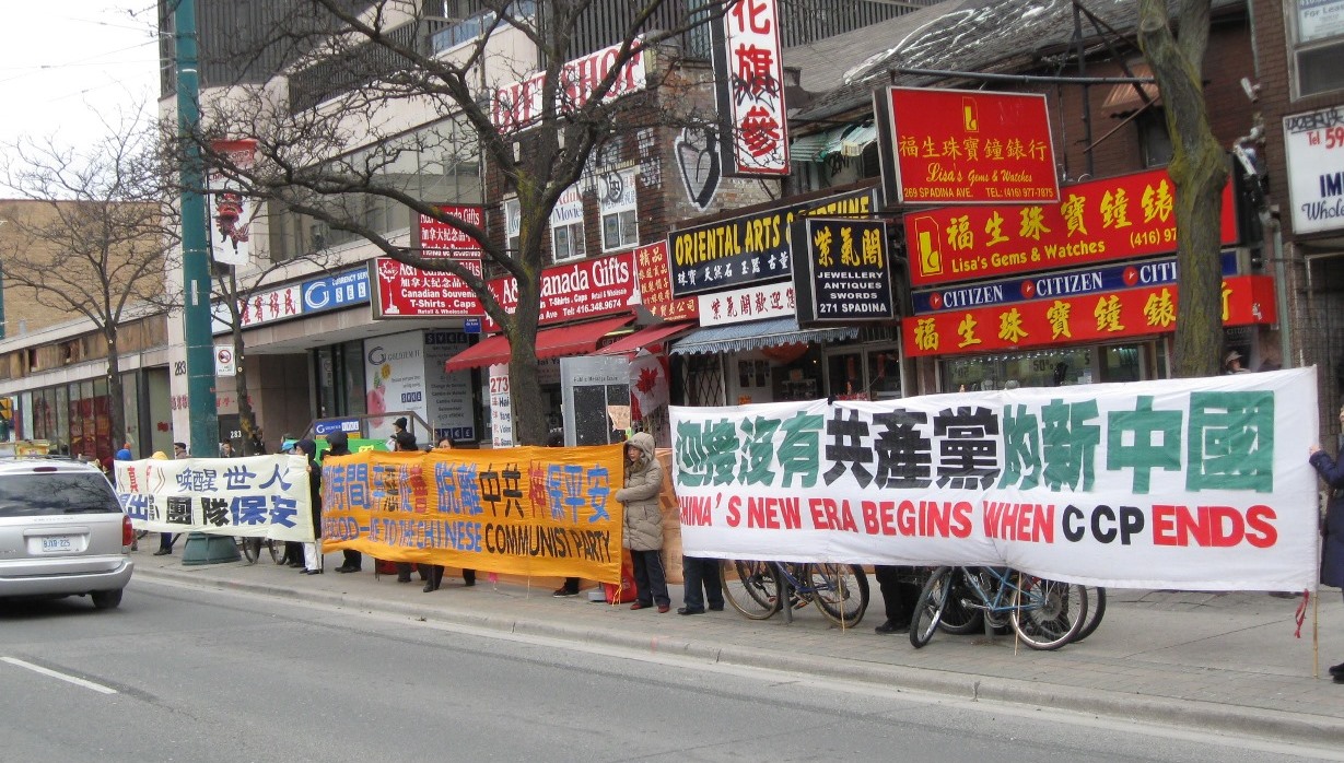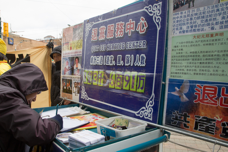 多伦多法轮功学员在中区唐人街举行真相长城,现场讲真相劝三退及征签活动