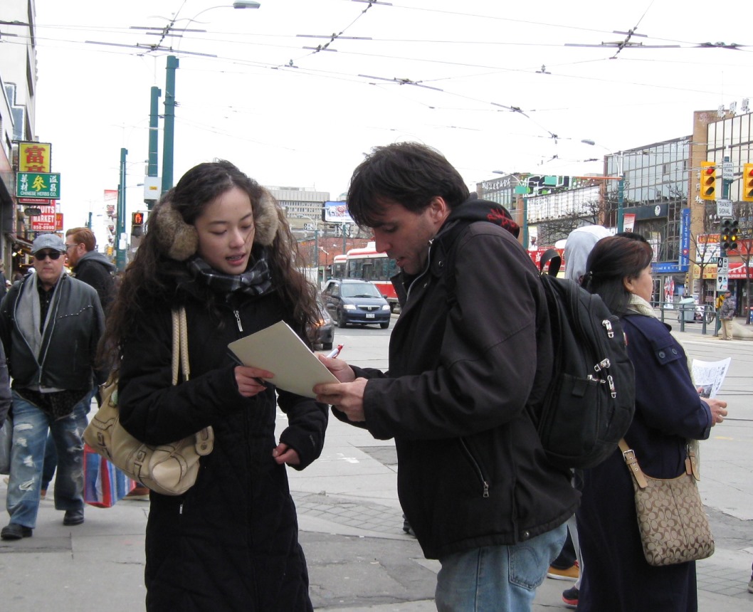 一位来自约克大学的学生签名后,留下了他的联络方式,他说要在大学同班同学中征集制止活摘器官的签名。一位亚裔社区领袖在街头遇到了征集签名的法轮功学员,他不但自己签了名,还告诉过往的加拿大人中国发生了什么,称签名就是制止中共的迫害。