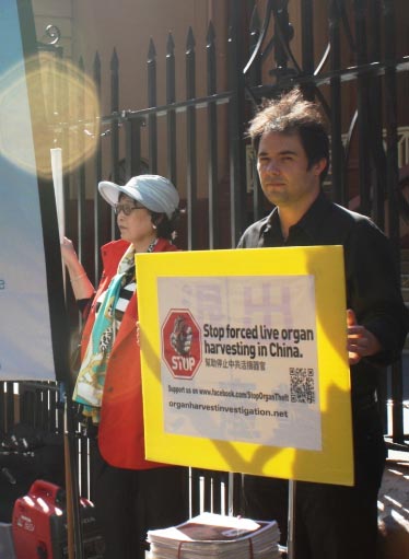 ![]() 托马斯在纽省议会大厦前参加递交悉尼民众签名的请愿信活动 |