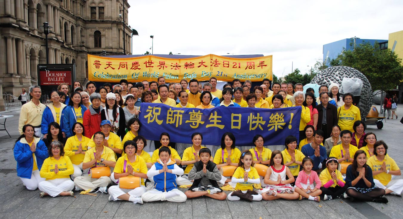 ![]() 法轮功学员在澳洲布里斯本广场(Brisbane Square)上展示功法 |