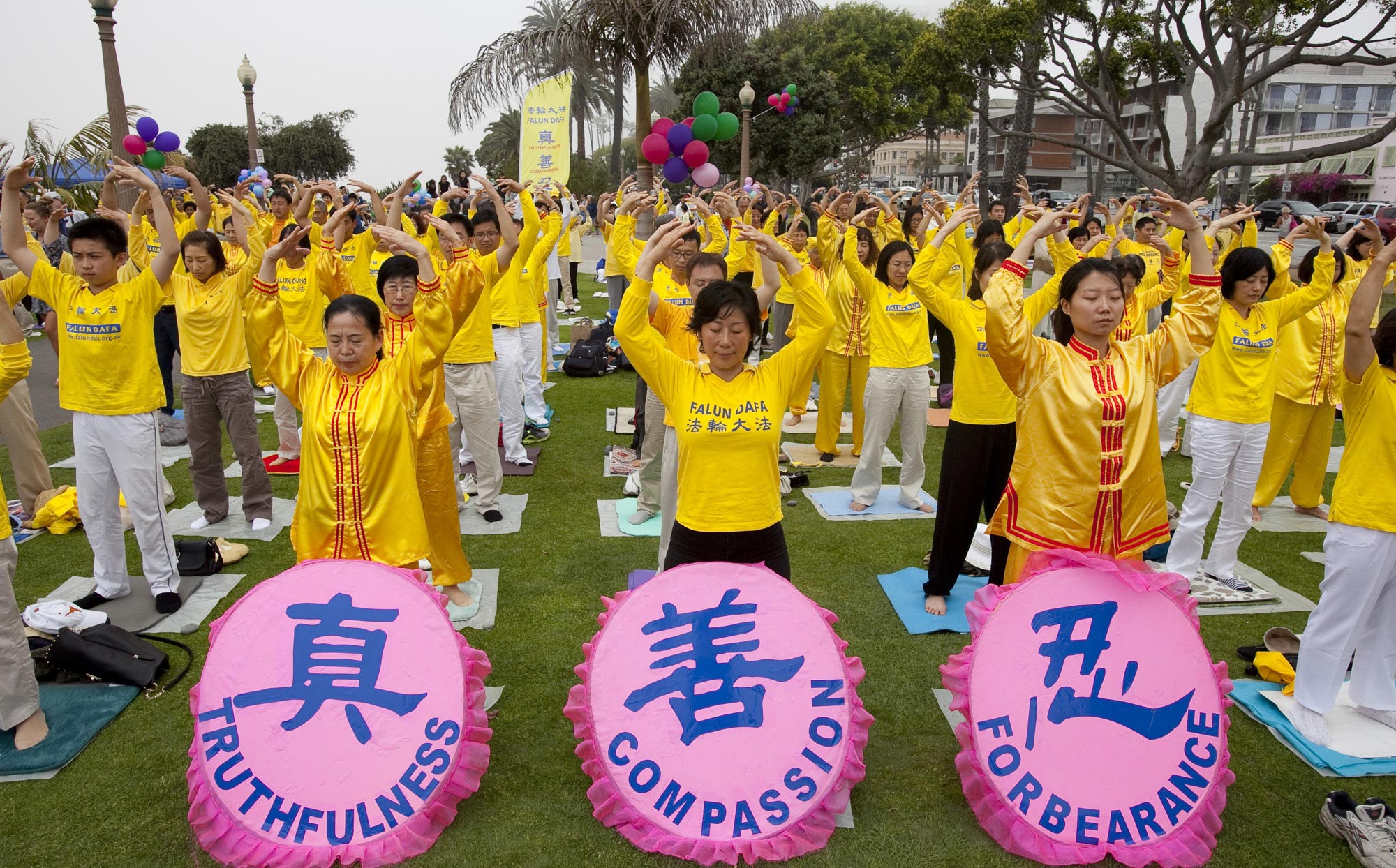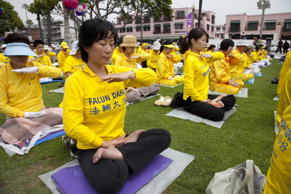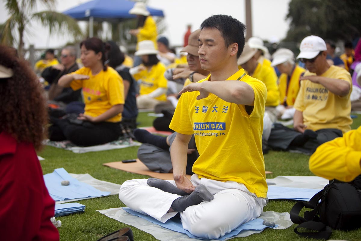 法轮功学员在圣塔莫妮卡海滩集体炼功