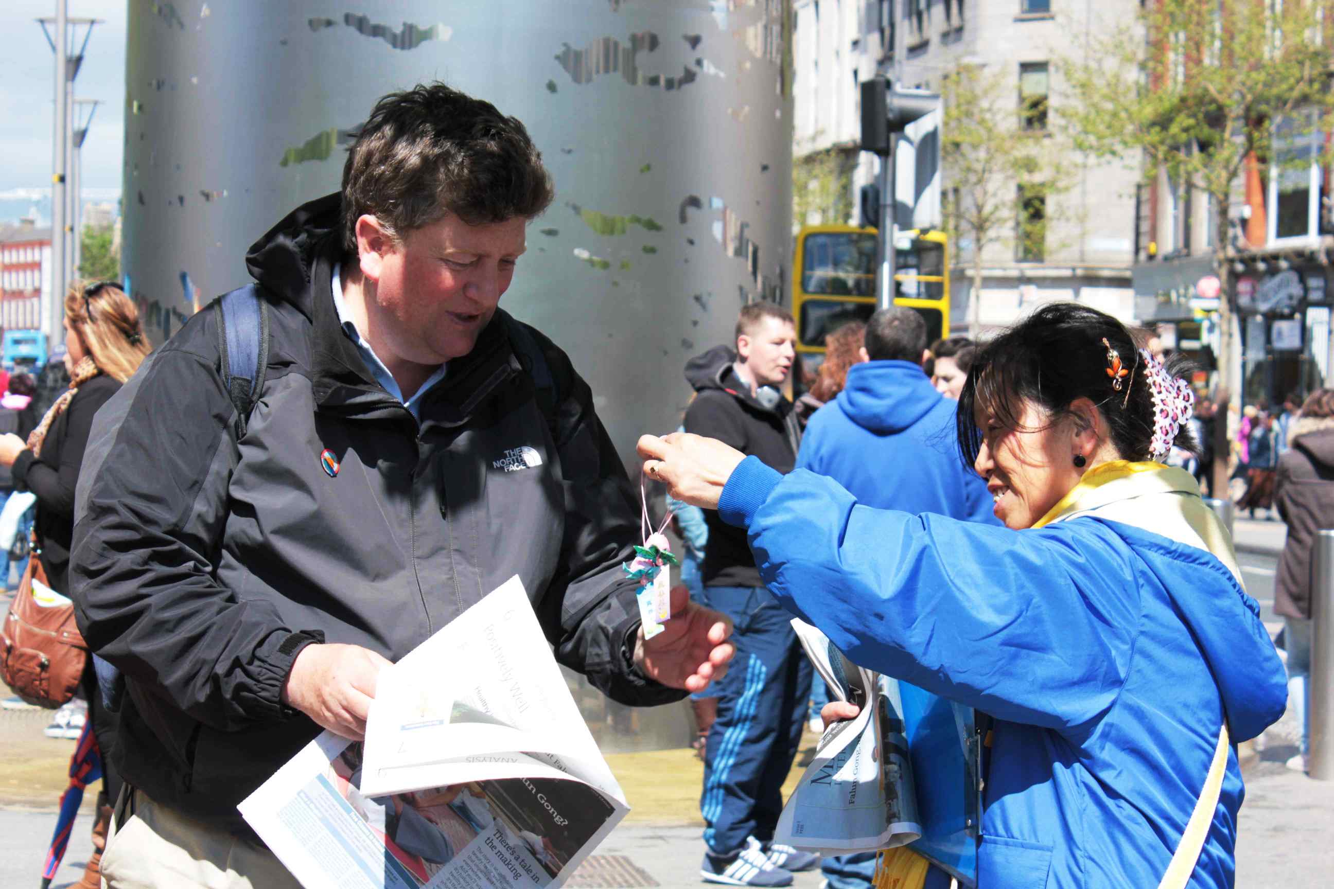 【明慧网二零一三年五月十五日】(明慧记者李凤翔爱尔兰都柏林报道)为庆祝每年一度的“5•13世界法轮大法日”,爱尔兰法轮功学员于二零一三年五月十一日,在都柏林市中心举行了庆典活动。活动包括游行和集会,吸引了大量的民众驻足观看。