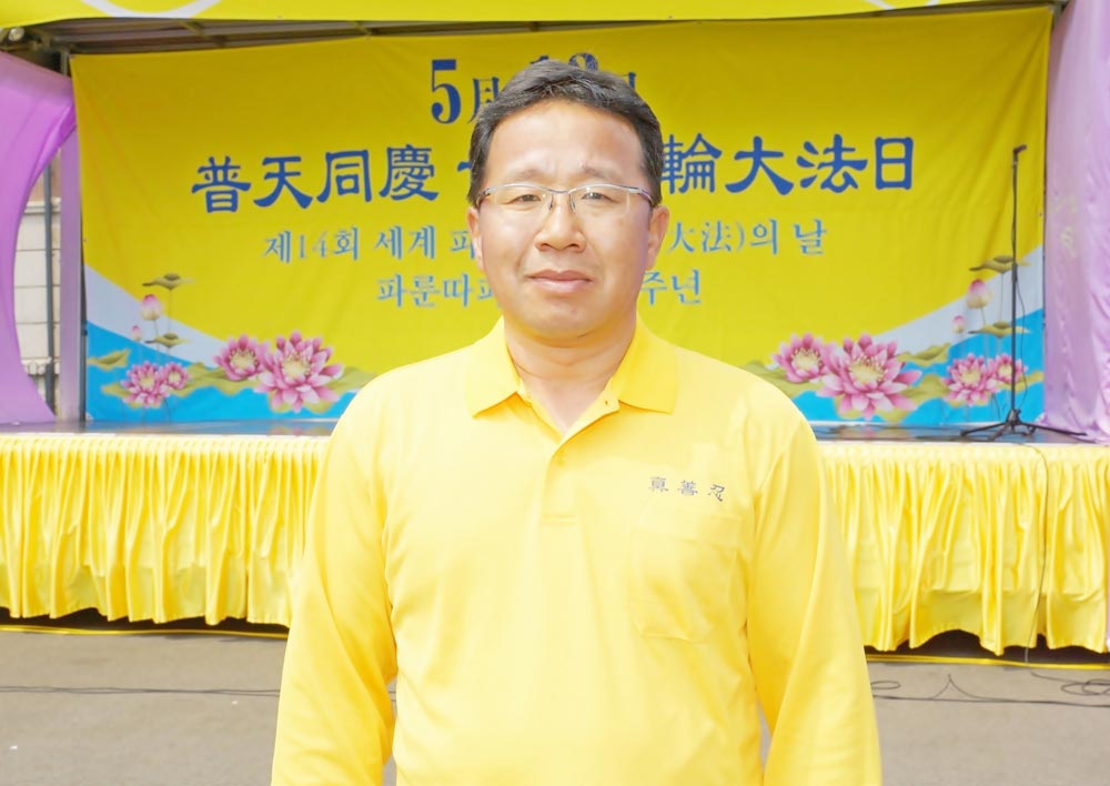 来自首尔市恩平区的崔洪龙是位六十多岁非常有风度的专业老医师,他说自己平时对佛教和基督教的书籍很感兴趣,他是在公园看到法轮功学员们的炼功场面后,认识法轮功的。