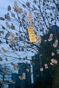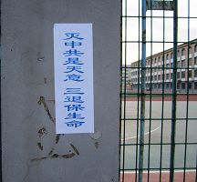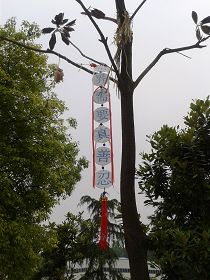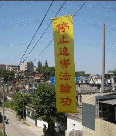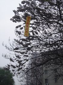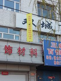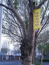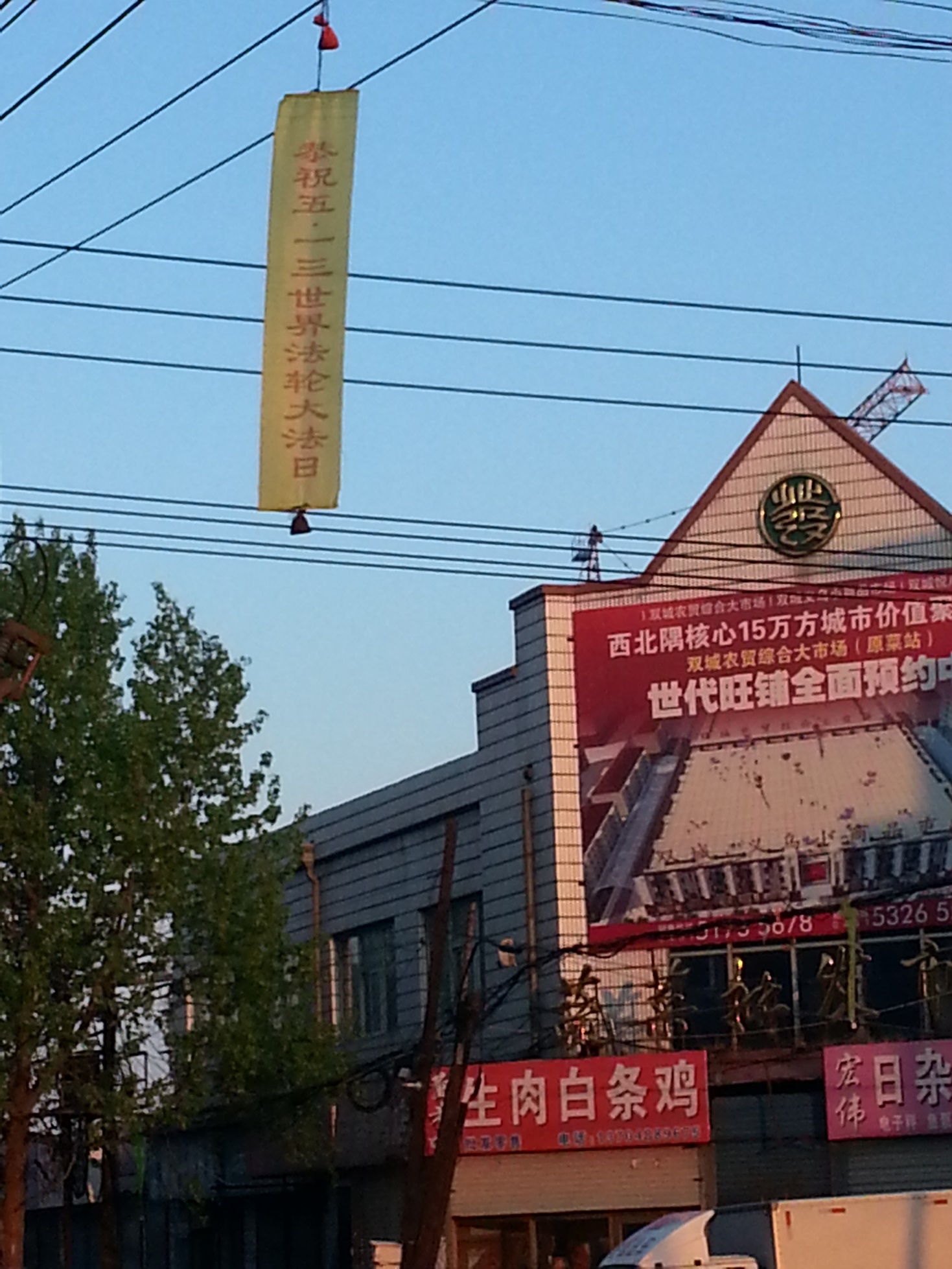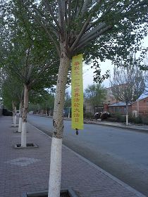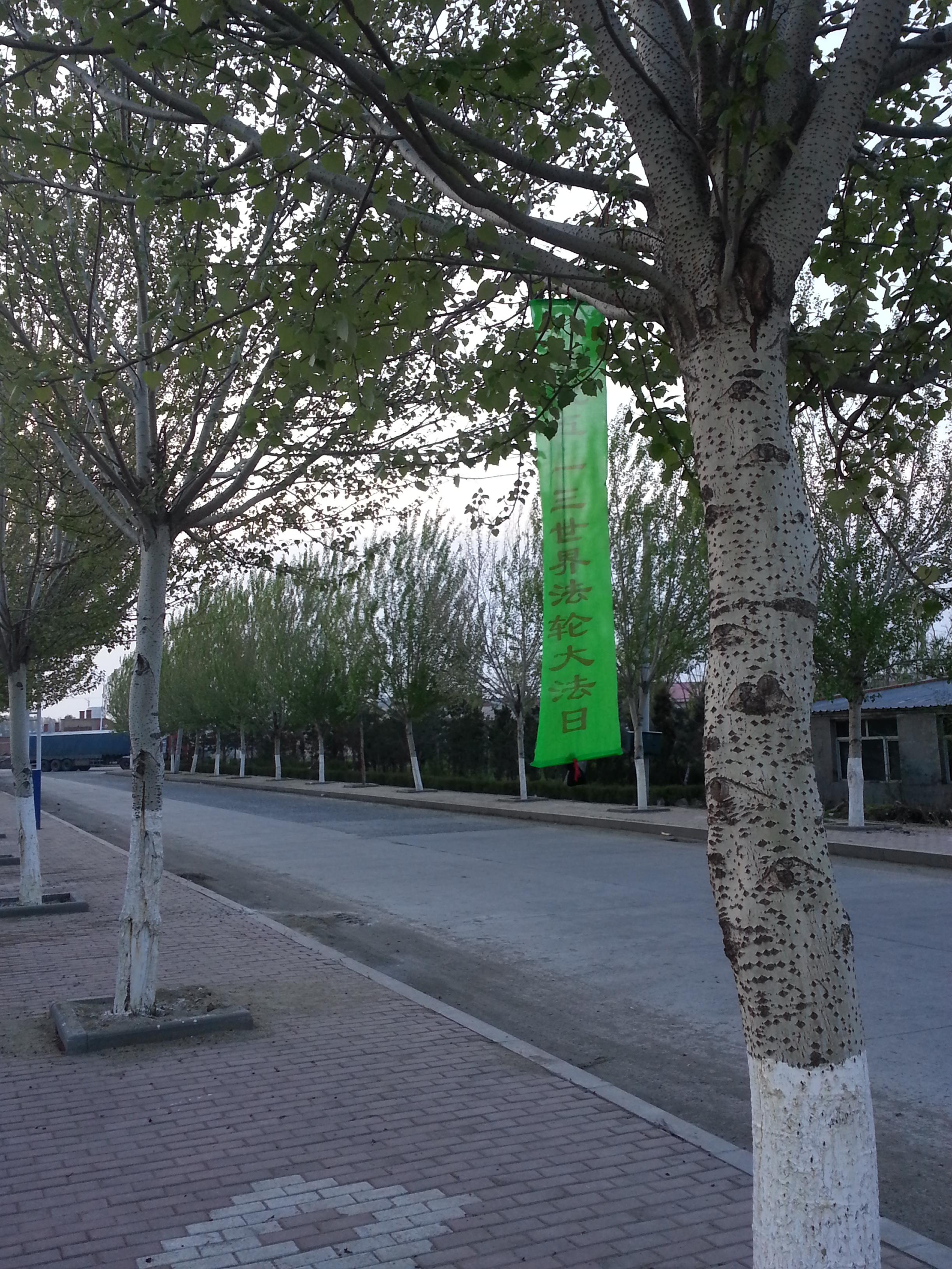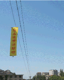 近段时间某市的各县以及各乡镇、村级等地区在四•二五和五•一三这段时间内,上千条条幅悬挂在各大街小巷的树上,电线上和山上,成为一道最亮丽的风景。