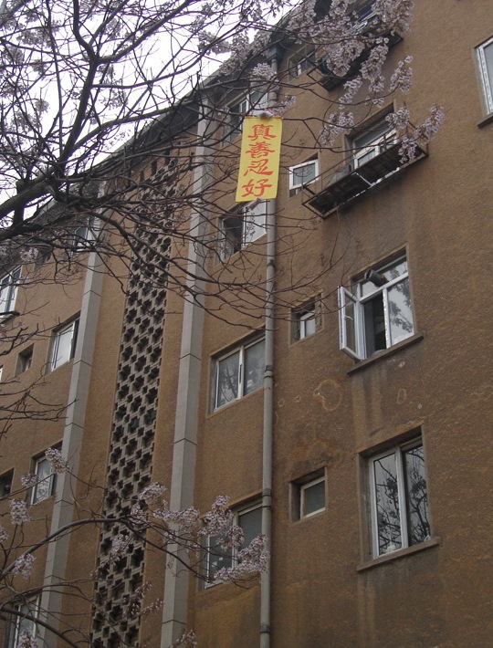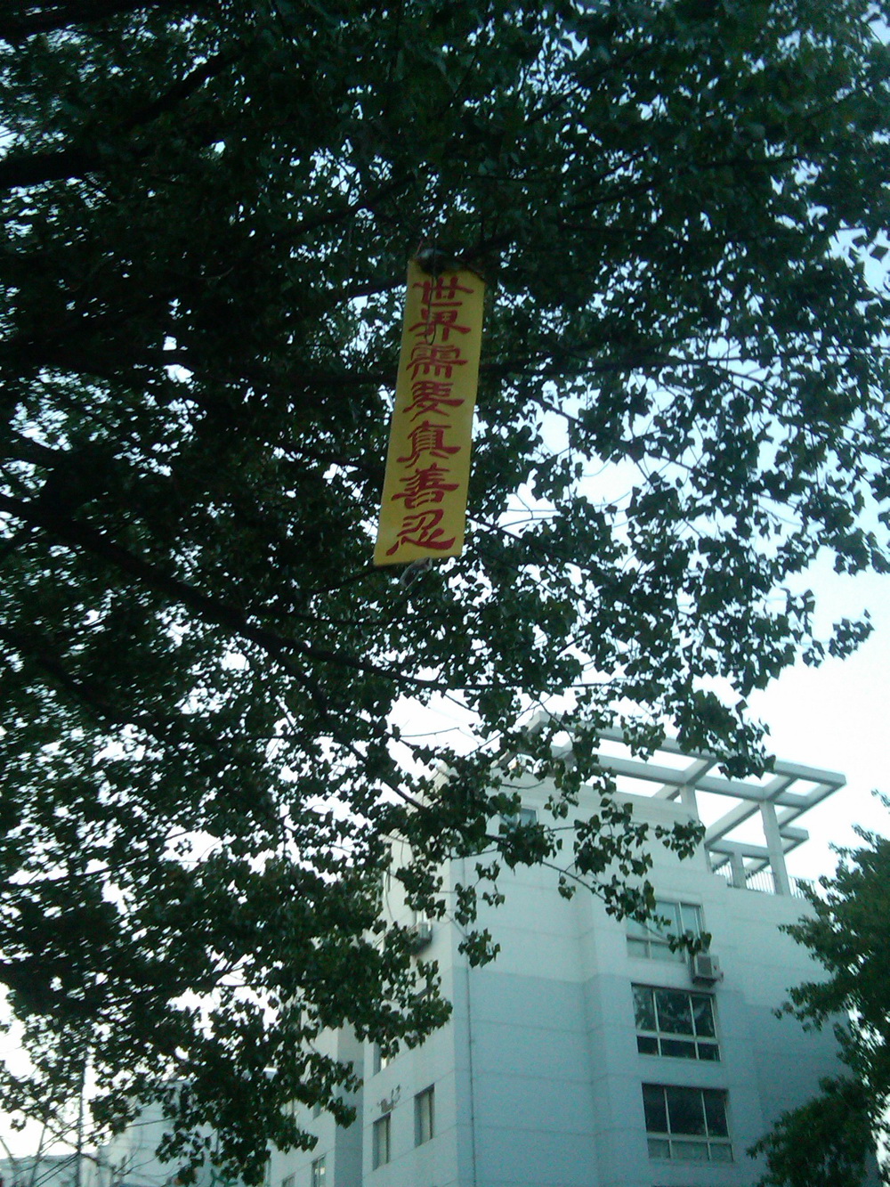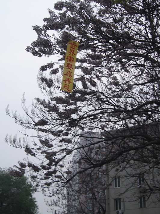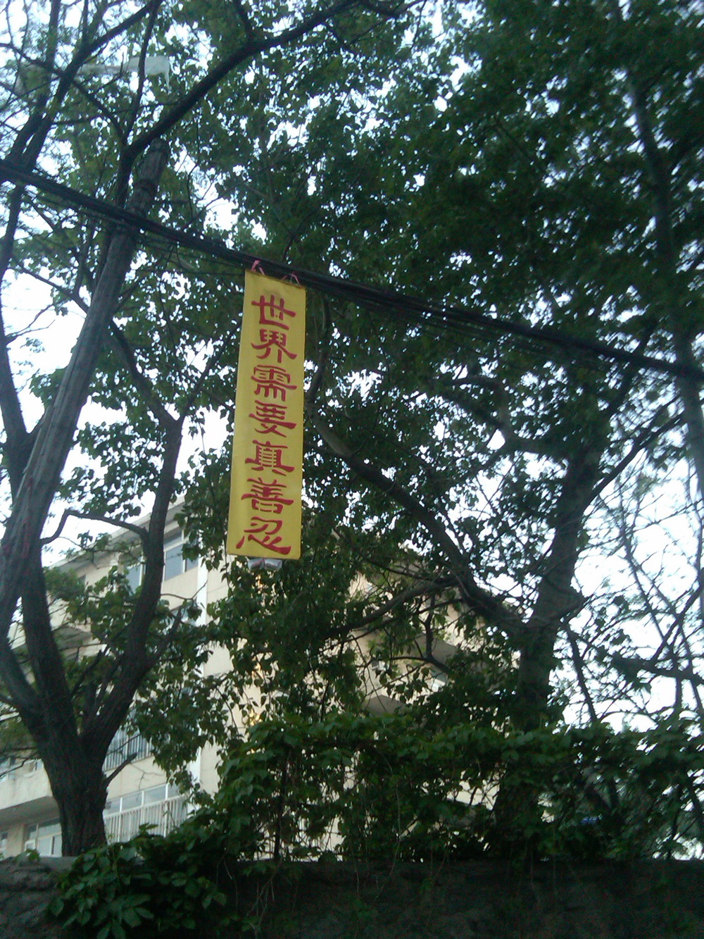 在五月十三日“世界法轮大法日”前后期间,大连市的许多路街、小区、休闲场所出现了各种内容的大法真相标语。上传的这些只是其中的一角。