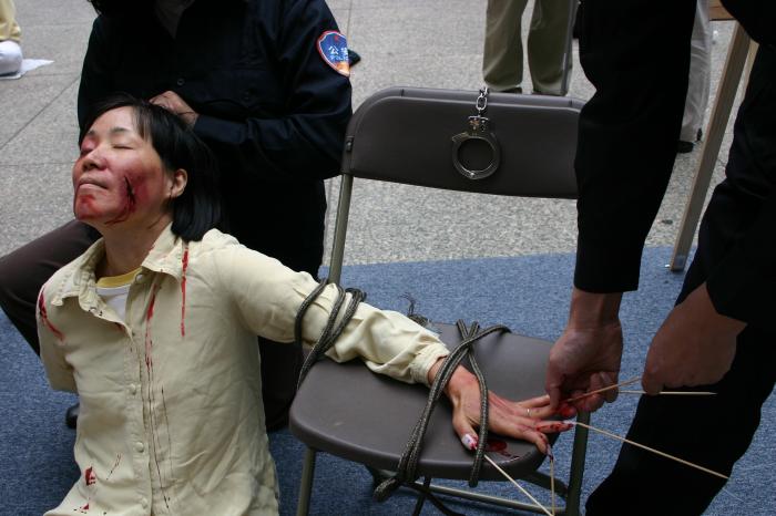 【明慧网二零一三年五月三十日】(明慧网通讯员辽宁报道)哈尔滨市法轮功学员付辉女士三月二十一日在沈阳被绑架后,在大东分局遭酷刑折磨两天一夜,被绑在铁椅子上电击,恶警还往她手指甲里钉牙签,她现在身体极度虚弱。