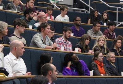 报告会地点是利兹大学内最大的礼堂,一百多位利兹大学师生参加了会议。报告会从晚上六时半开始后持续了近三个小时,在问答互动阶段现场听众踊跃提问,会议结束后还有一些听众留下来与发言嘉宾深入交流。