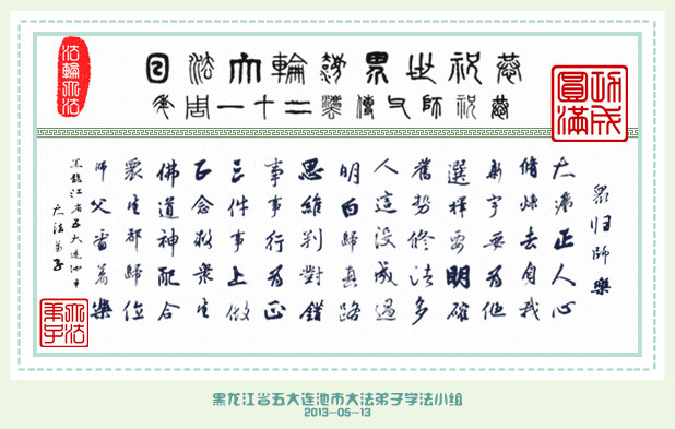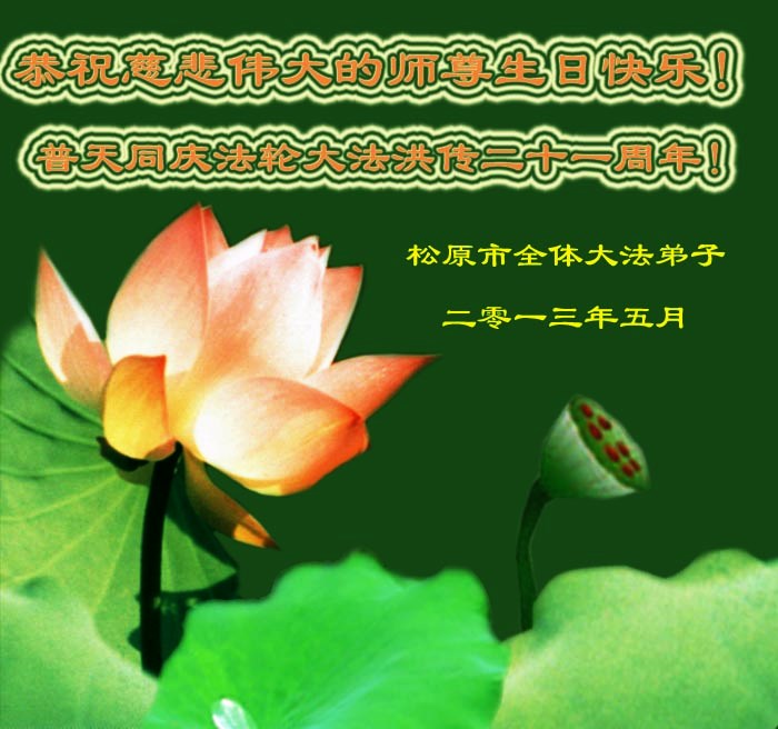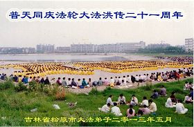 松原市全体大法弟子庆祝法轮大法洪传二十一周年!恭祝慈悲伟大的师尊生日快乐!