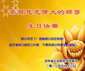 吉林省公主岭市全体大法弟子恭祝师尊生日快乐!恭贺世界法轮大法日!