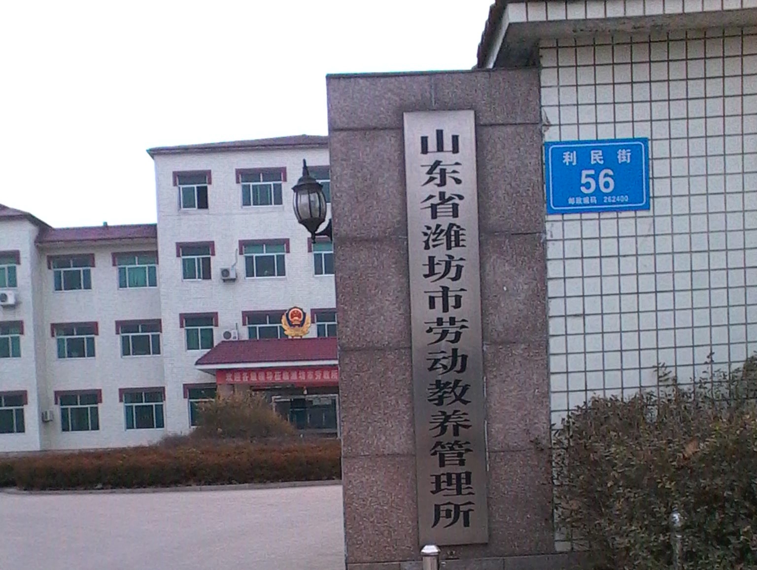 山东省潍坊市昌乐劳教所,分为警察办公的大院和关押人的监区大院,办公的大院大门口挂的牌子是“山东省潍坊市劳教管理所”和“潍坊市城郊地区检察院检察室”二块牌子。关押人的监区大院外大门没挂牌子,内大门(即:关押劳教人员的地方)挂的牌子是“劳教管理区”。