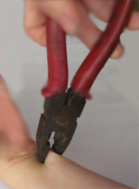 ![]() 酷刑演示:脚踩在手臂上搓捻 |