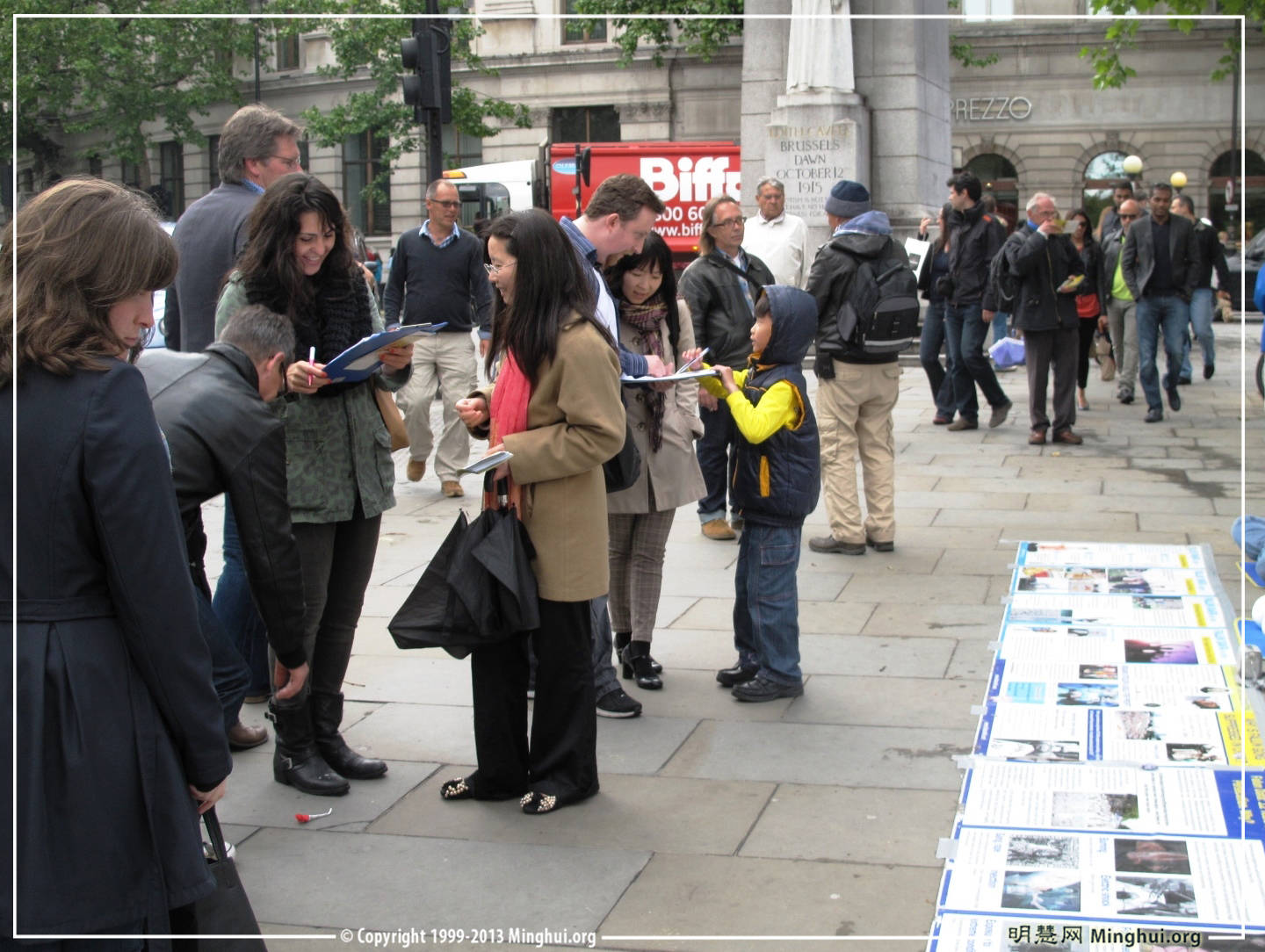 【明慧网二零一三年六月十八日】(明慧记者唐秀明英国报道)二零一三年六月十五日,又一个伦敦市中心的繁忙周六,英国法轮功学员再次来到伦敦圣马丁广场举办讲真相活动。