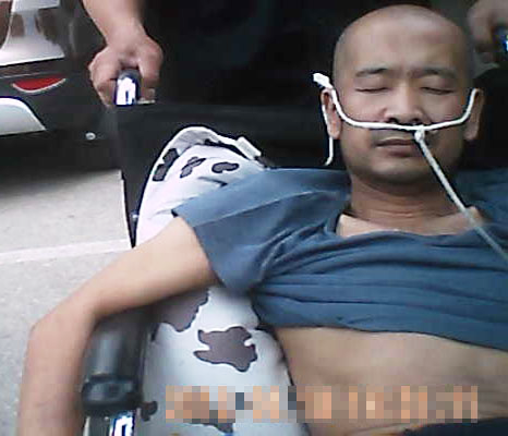 二零一三年六月十八日在臭名昭著的辽宁省沈阳马三家监狱城的辽宁省沈阳新入监犯监狱门前,陈新野74岁患心脏病的父亲和患精神病的母亲与妻子、姐姐在监狱门口守望,丹东市看守所押送陈新野、韩春龙至监狱的面包车号为辽F0037和辽FG0026,下午一点三十分左右急驶至监狱门口,韩春龙在前一辆辽F0037车上坐着轮椅,头向后仰身体虚脱无力,(韩春龙身体病情严重又在面包车上颠簸了四个多小时)脸色表情非常痛苦。