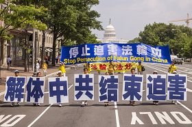 法轮功学员自迫害发生后,每年七月都会在华盛顿DC举行反迫害活动。对此,法轮功学员刘女士谈到自己的感受时说:中共迫害法轮功十四年,如今已经走到了穷途末路。明慧网上近日刊登的大陆消息显示一些劳教所不得不开始释放被关押的法轮功学员,显然迫害已难以为继。但是只要迫害一天不彻底停止,我们海外法轮功学员就一天不会停止反迫害的呼吁和对中共暴行的揭露。我们所做的,无论是声势浩大的活动,还是细水长流的日常深入讲真相,都能让更多人了解中共谎言黑幕掩盖下发生的迫害,也了解法轮功给人带来身心健康的事实。让人们明白真相,是我们十几年来坚持不懈的动力。