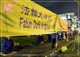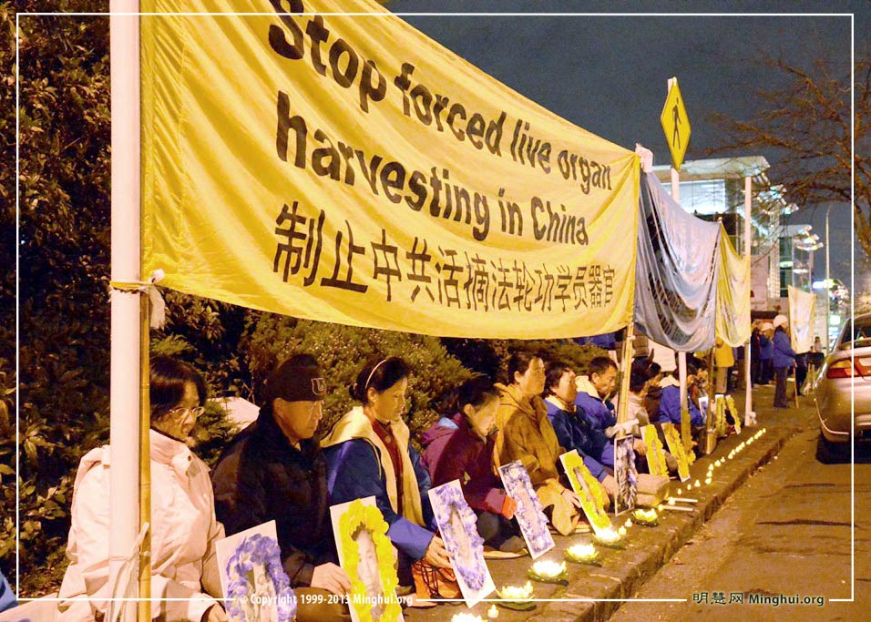 奥克兰法轮功学员在中领馆前举行烛光夜悼活动,抗议中共迫害