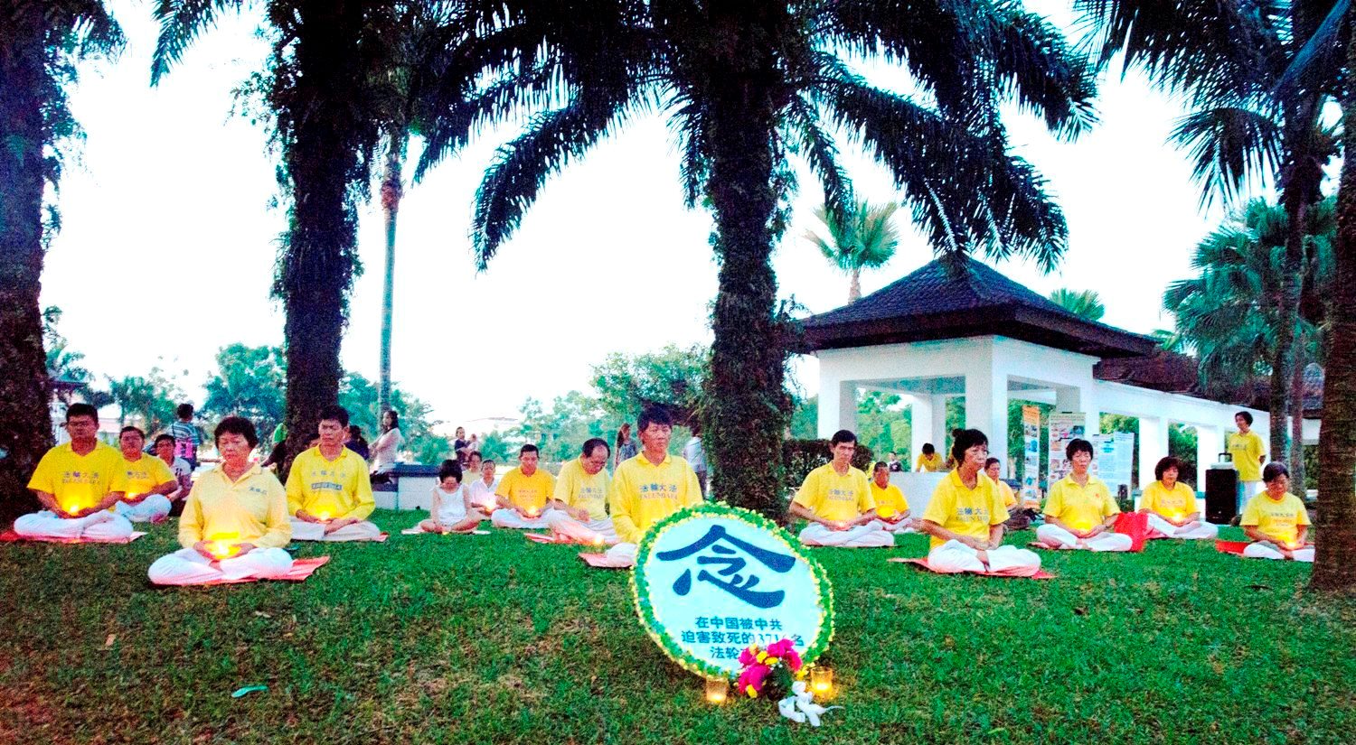与此同时,马来西亚南部柔佛州新山的法轮功学员在七月二十一日,下午五点起,来到 Setia Indah公园集体炼功,并举行了烛光悼念,同时办征签活动,揭露中共罪行,呼唤正义良知。