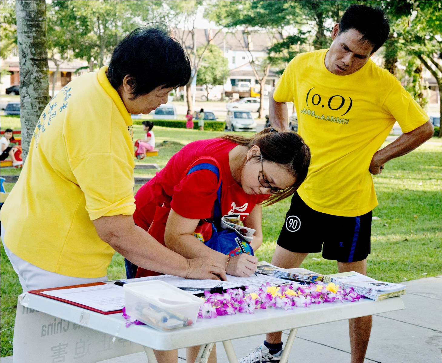 ![]() 在新山Setia Indah公园,许多民众签名反迫害。 |