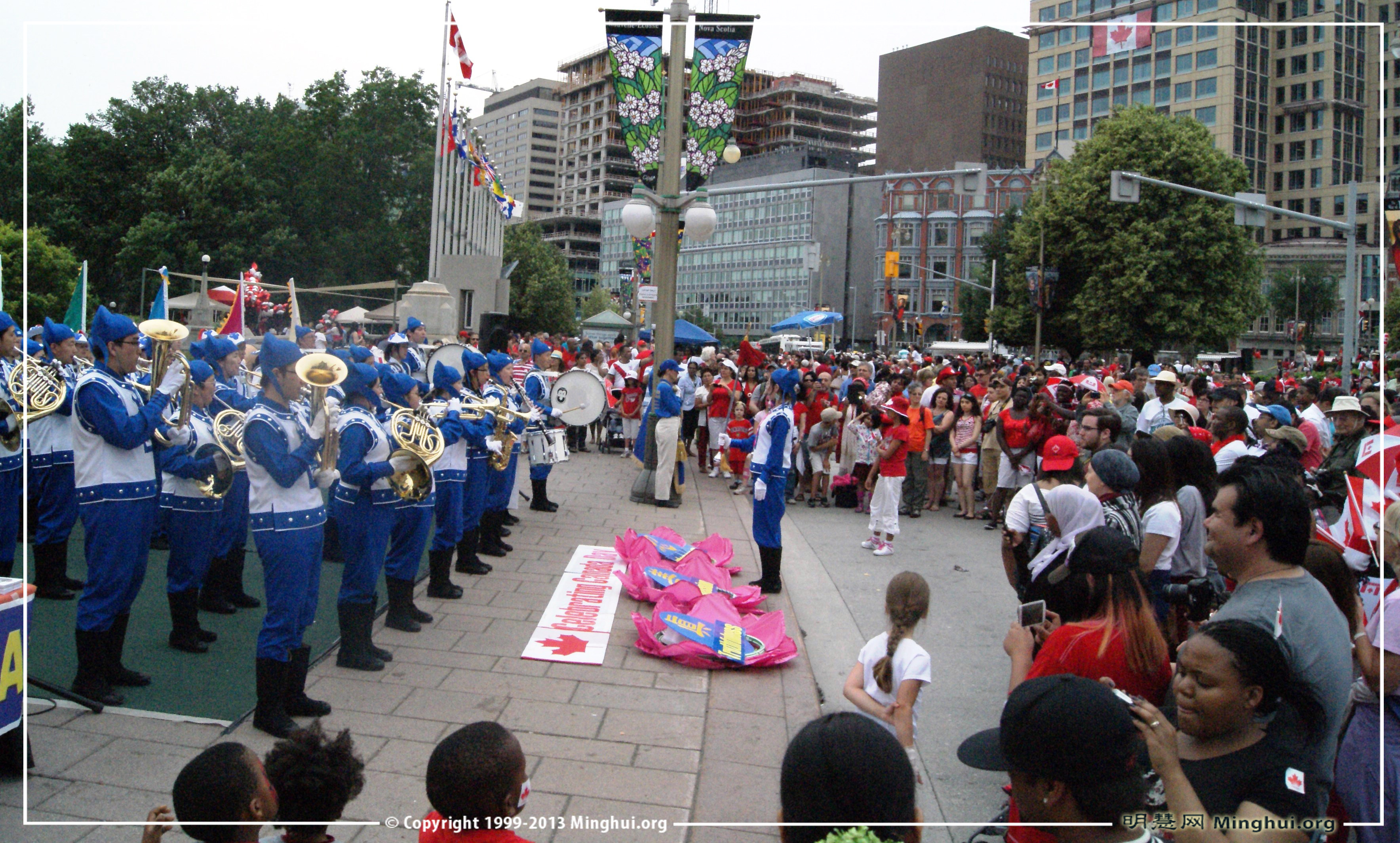 ![]() 图2:由法轮功学员组成的天国乐团在表演,和民众同庆加拿大国庆 |