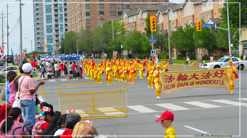 【明慧网二零一三年七月四日】(明慧记者章韵加拿大多伦多报道) 二零一三年七月一日是加拿大建国一百四十六周年纪念日。每年的这个日子,名声在外的多伦多天国乐团都会接到周边城市游行主办方的邀请,有的提前几个月就邀请了,有的给路费和补贴来邀请。