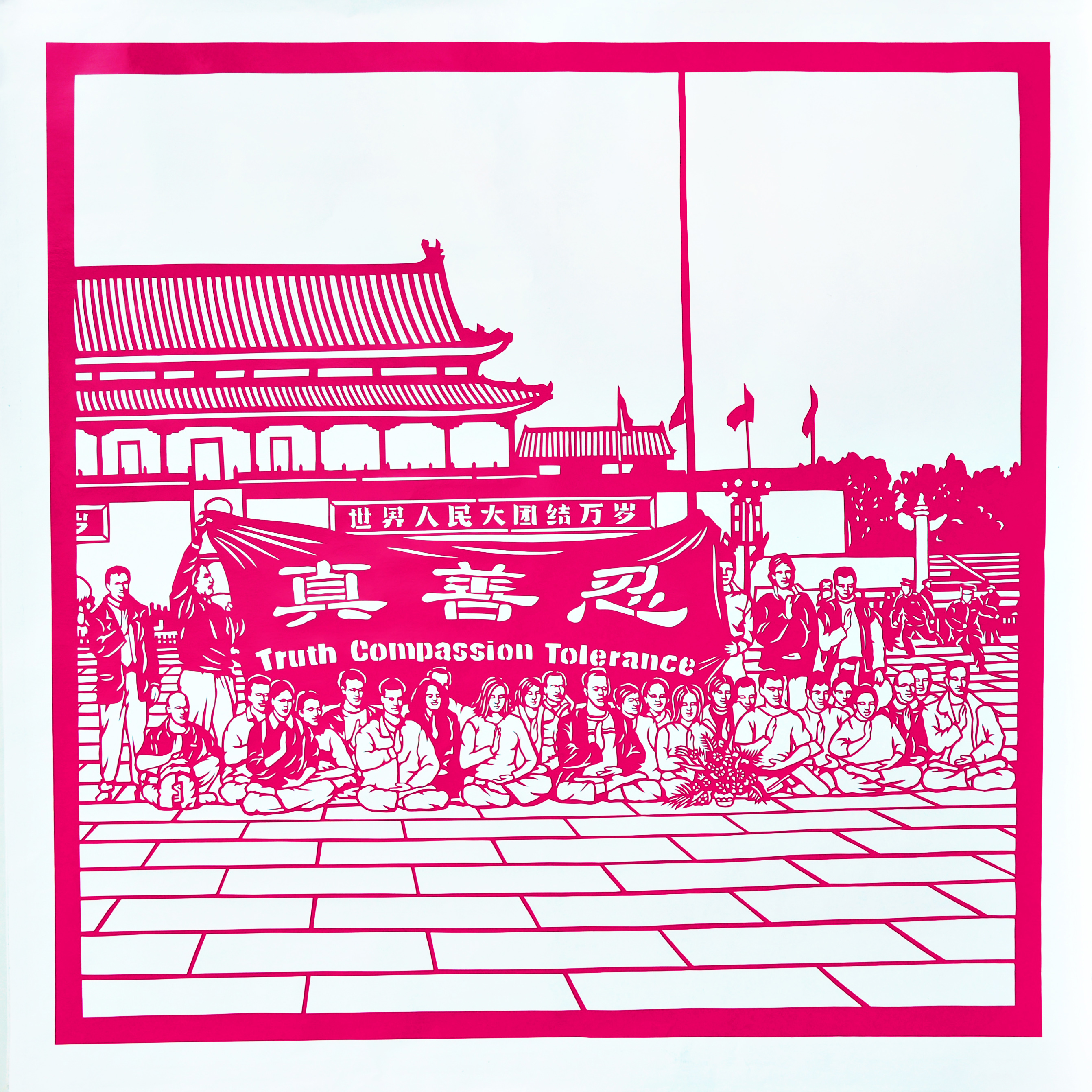 二零零一年十一月二十日下午两点,来自十二个国家的三十六名西人法轮功学员在天安门广场打出了写着“真善忍”的横幅,为法轮功和平请愿。不到一分钟,警车呼啸而至,围捕、殴打、拖走。这震惊世界的新闻,国际各大媒体竞相报道。