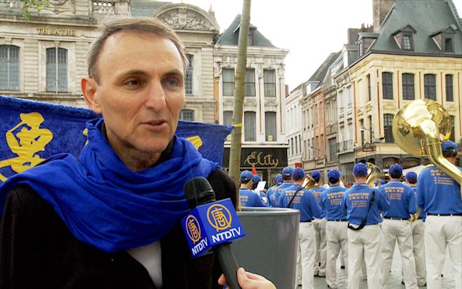 乔尔·弗日衡是一位财务公司项目负责人,在人群中观看乐团的演奏后,了解到中共活摘法轮功学员器官牟利的罪恶,他感到很震惊。在反活摘器官的征签表上签名后,乔尔说:“在天国乐团面前,我了解到中国发生了什么,所有这些足以让我震惊:摘取器官,政府的帮凶酷刑折磨人,让人们只能有一个思想。”