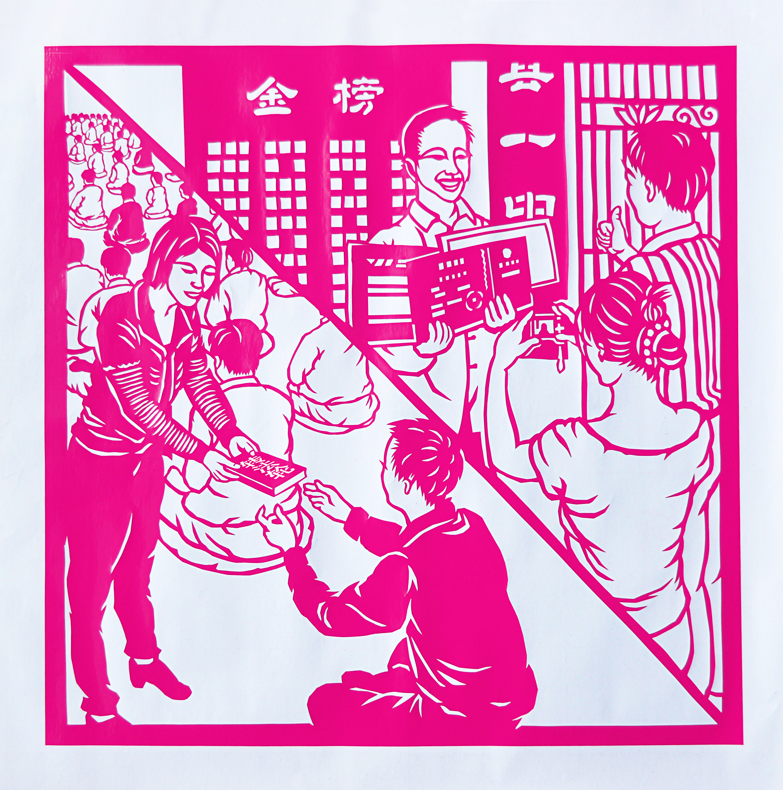 剪纸尺寸:长四十一厘米、宽四十一厘米。