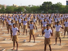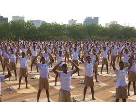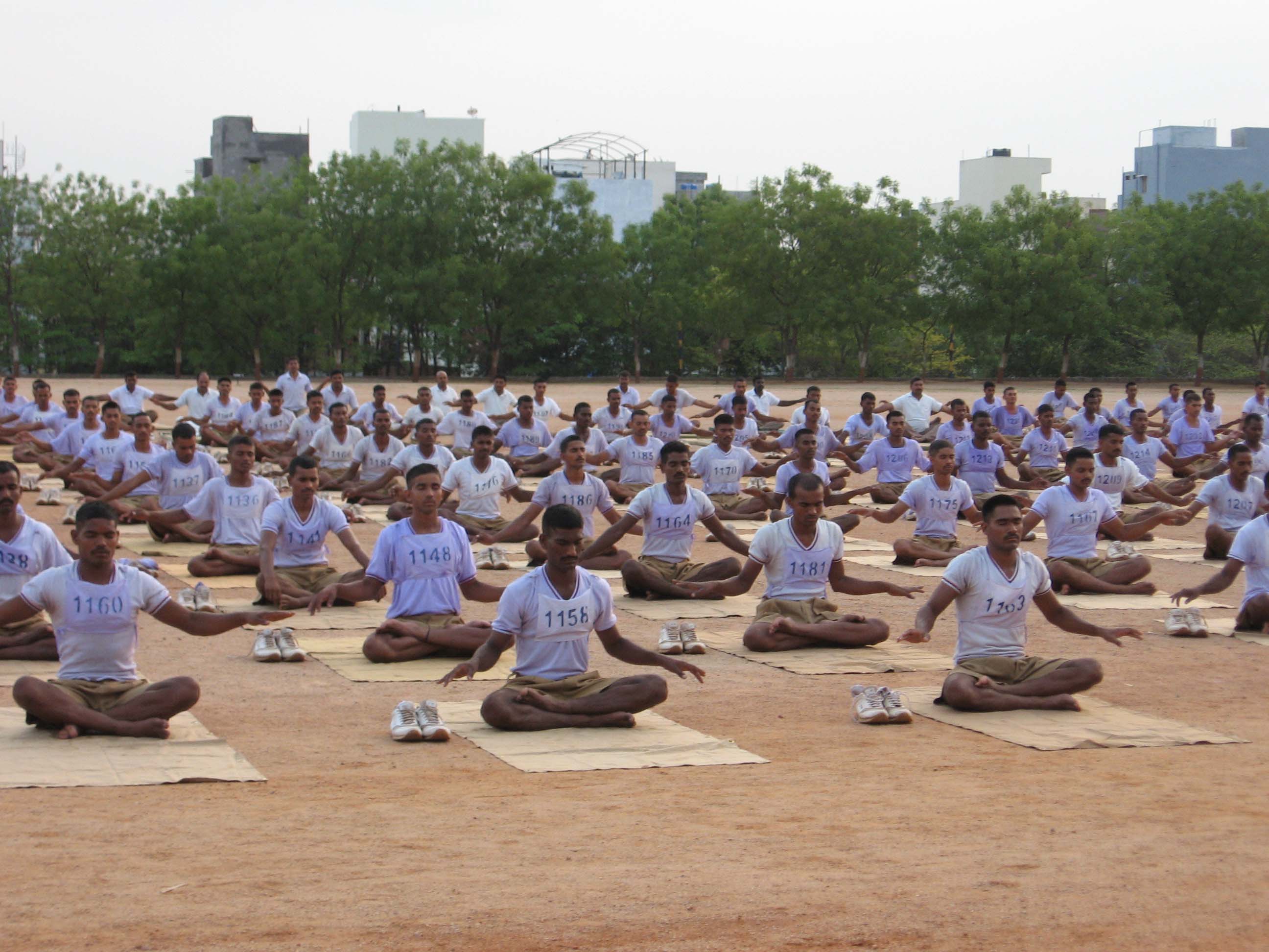 ![]() 图:享有极高声誉的印度海得拉巴市特警在炼法轮功 |