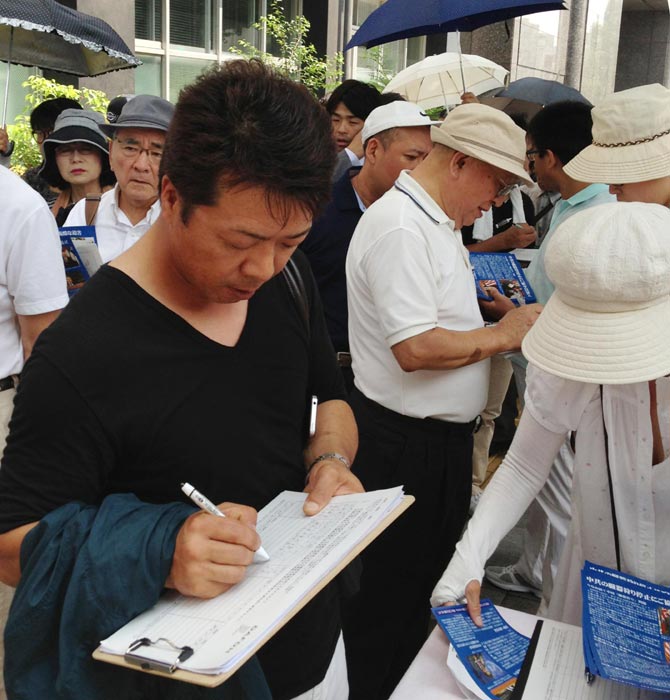 一下九段下车站就能看到醒目的SOS展板,揭露中共暴行。日本民众表示一看就很震惊,赶紧签名反迫害。一位来自横滨的老太太了解了法轮功给人带来的身心升华后,立刻表示要找炼功点学功。假期里带着孩子出来游玩的父母们也主动签名,呼吁制止发生在中国的迫害。