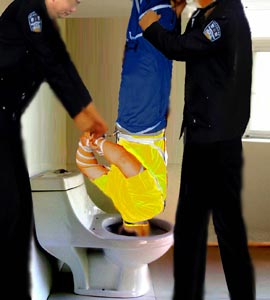 ![]() 酷刑示意图:灌水(马桶灌水) |