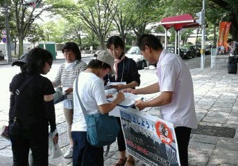 ![]() 图:名古屋城前,游人签名呼吁制止中共活摘法轮功学员器官的暴行 |