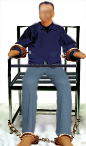 ![]() 酷刑模拟示意图:铁笼子里的铁椅子 |