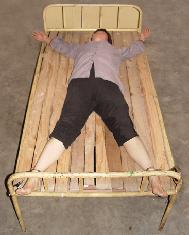 熊文旗因绝食抗议迫害,被恶警用“扎死人床”的方式,五根长绳将他四肢身体固定绑在床上,强行插管,长达一年多。监狱为了让熊文旗放弃绝食就采用各种手段逼迫和虐待他。熊文旗在提篮桥监狱中被隔离,不准任何人探视,一天到晚二十四小时被绑在床上,大小便不能自理。监狱局长来查监,对熊文旗说:“只要你承认法轮功是×教,我马上放人。”(中共才是货真价实的邪教)熊文旗拒绝放弃自己认识的真理。