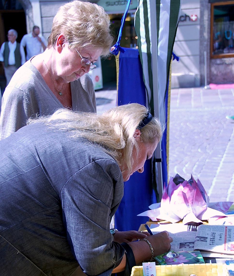 Jirkal女士是奥地利一家妇女俱乐部驻萨尔斯分部的主席。她直接来到了法轮功学员的信息台前签字。她表示她听说过法轮功被中共残酷迫害的真相,所以她特地前来签名支持制止迫害。她留下了她的名片,让法轮功学员联系她,并把网上征签的网址给她,她要把中共活摘法轮功学员器官的暴行告诉她在全奥地利的五百名同事,让他们在网上签字。