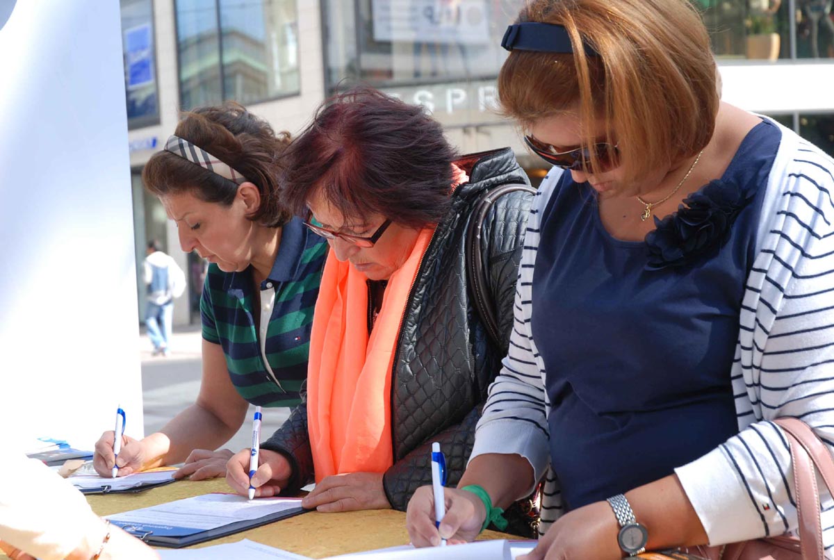 八月二十七日和二十八下午,国际人权组织先后在汉堡和不来梅市中心举行集会,向市民征签。绿党汉堡州主席凯瑟琳-菲格本科女士 (Katharina Fegebank)参加了在汉堡的活动并致词。