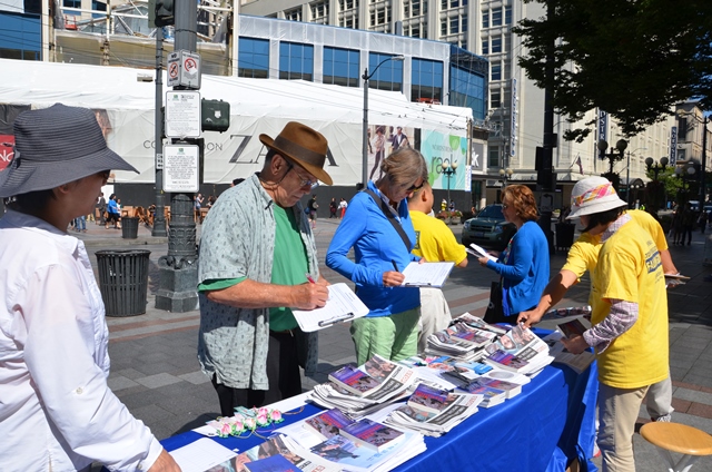 西雅图市中心举办反迫害征签活动(图)