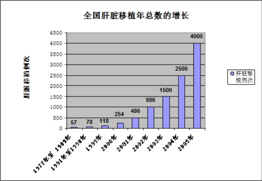 | 中国大陆实施肝移植的医院数目 | 肝移植总数 |
