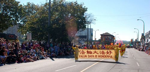 ![]() 多伦多法轮功学员参加第六十二届尼亚加拉葡萄酒节(Niagara Wine Festival)大游行,作为先锋队走在游行的最前方。 |
