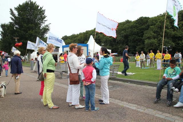 许多听说过法轮功被迫害的行人都表示非常不解。一位中年男子和学员交谈时表示,自己当初在荷兰媒体上看到法轮功被迫害的消息时感到非常的震惊,惊讶于这样一个基于打坐的气功怎么会受到迫害。