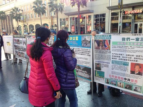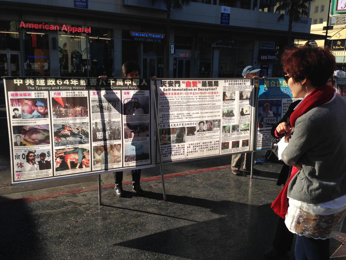 二零一三年洛杉矶美西法会结束后不久,洛杉矶大法弟子增加了讲真相救人景点。通过多方考察,在师尊的加持下,最终确定了在好莱坞星光大道开设了讲真相点。感谢伟大的师尊给了我们这样一个救度众生的机会和场所。