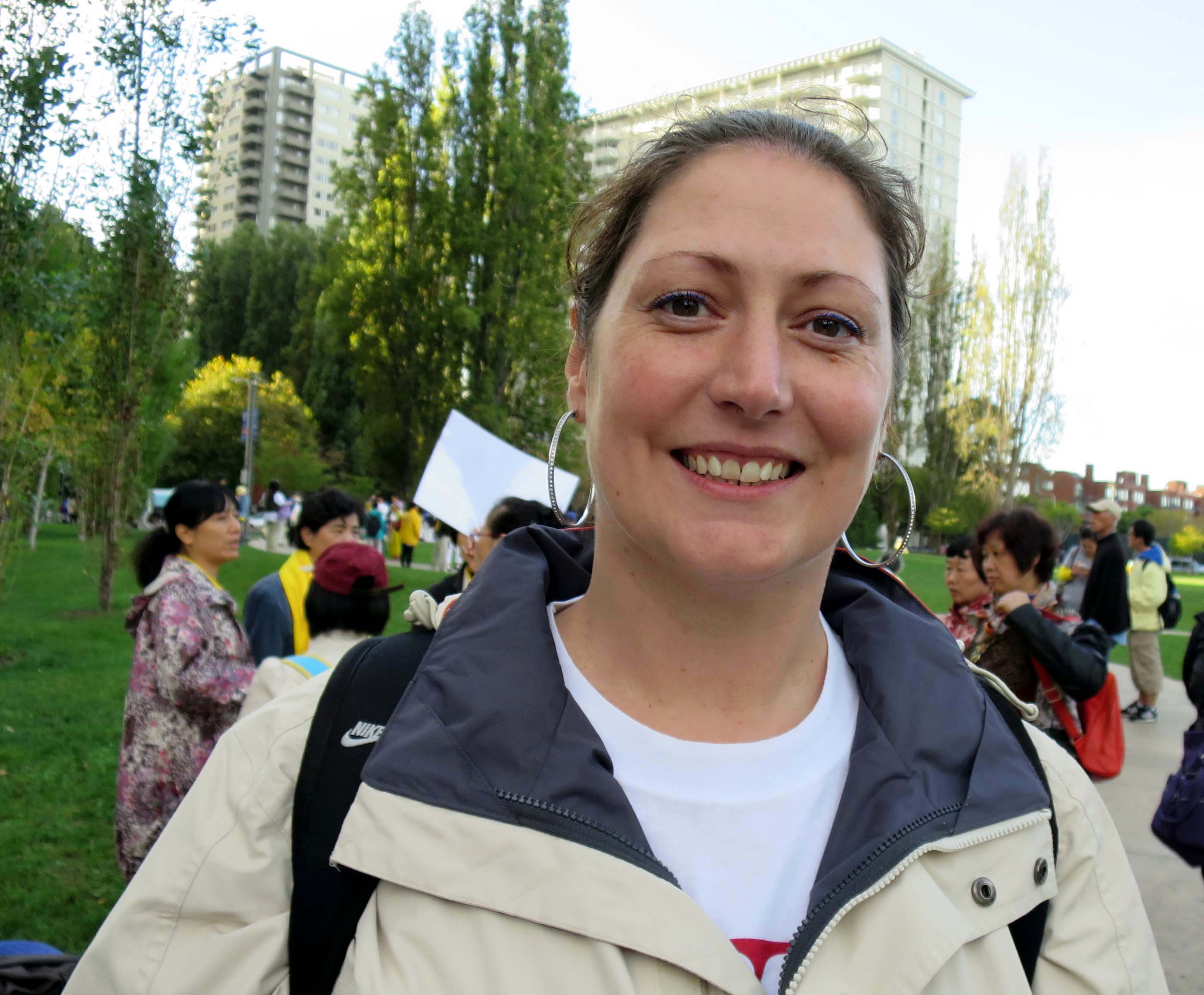 她希望中国大陆人都能够真实体验一下法轮功是什么,能放下误解,走近法轮功,“我希望他们能多给自己一个机会。”