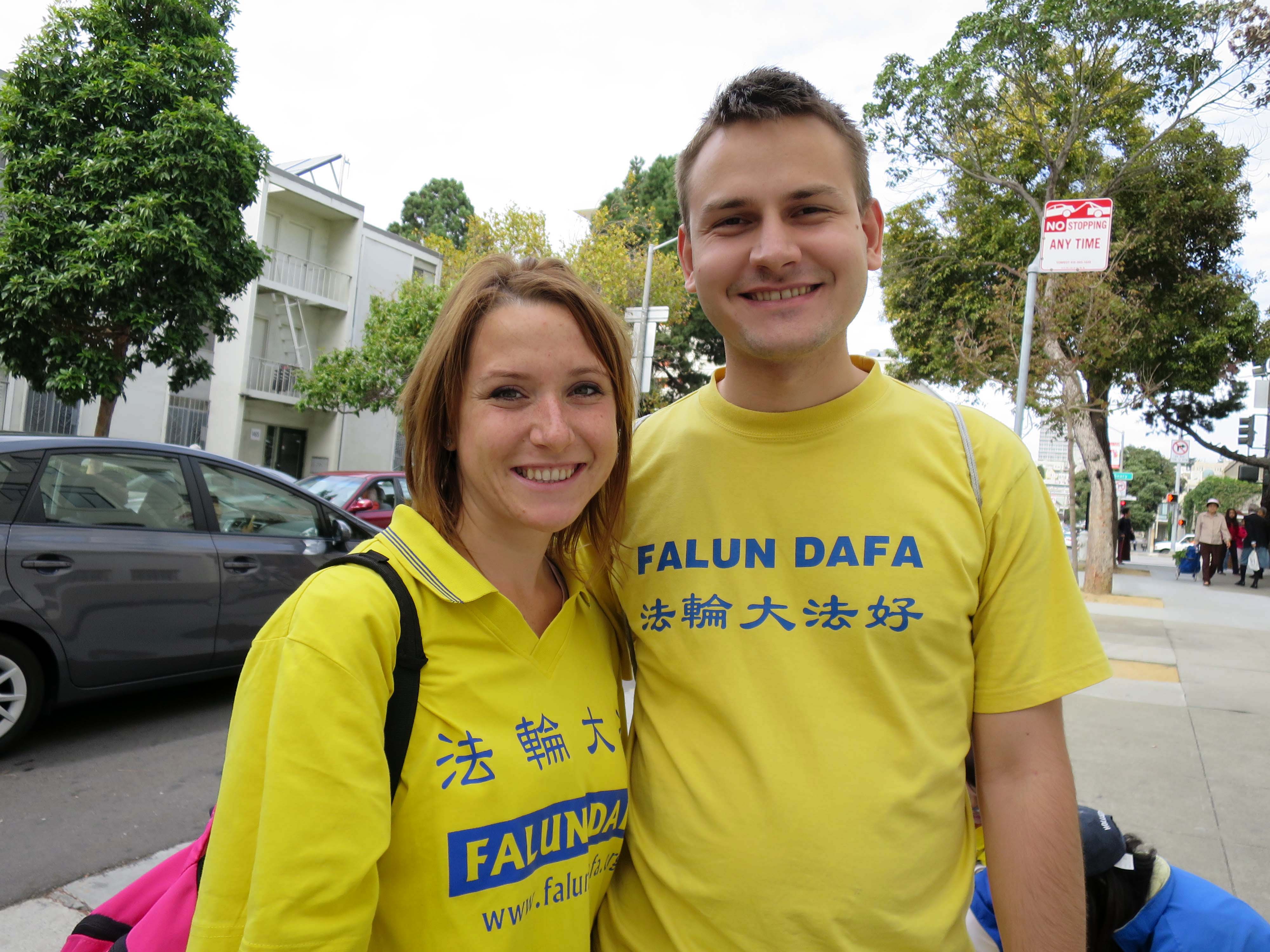 六年前Baranyai太太开始修炼法轮功,“我喜欢静坐,能让人平静,我觉得真、善、忍很好,所以我愿意试一试。”她介绍自己当初是如何走进法轮功的修炼队伍的。她表示通过修炼自己变得安静,也能善待别人。她的先生表示同意:“我太太过去脾气不好,修炼后变得安静多了。”他说自己以前对静坐很有好感,也在寻找人生的意义,“我发现法轮功很好,充满了正面能量,所以就开始接触和了解法轮功。六个月后,我就知道法轮功是什么了。”