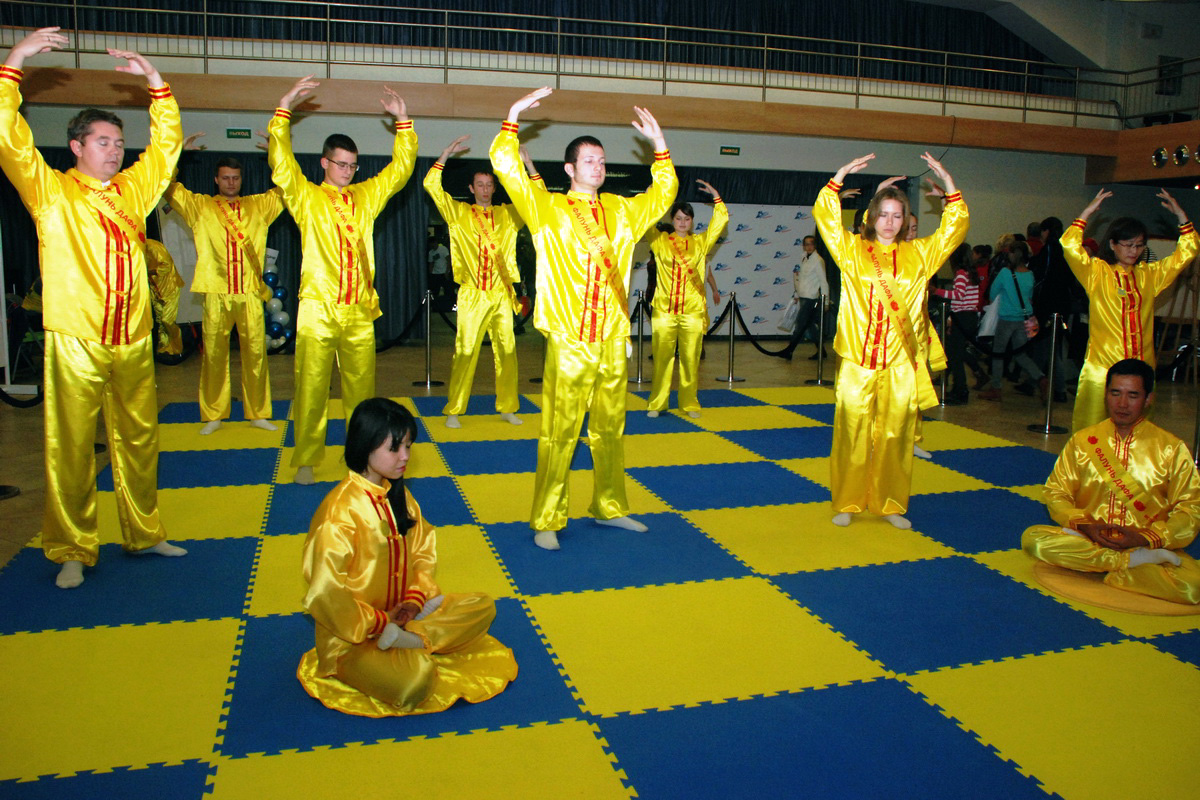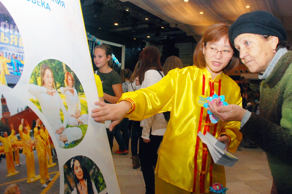 【明慧网二零一四年十月二十二日】二零一四年十月十九日,在俄罗斯莫斯科“运动健身节”上,莫斯科大法弟子为到场的孩子们、家长和各个健身组织成员带来了法轮大法的美好。