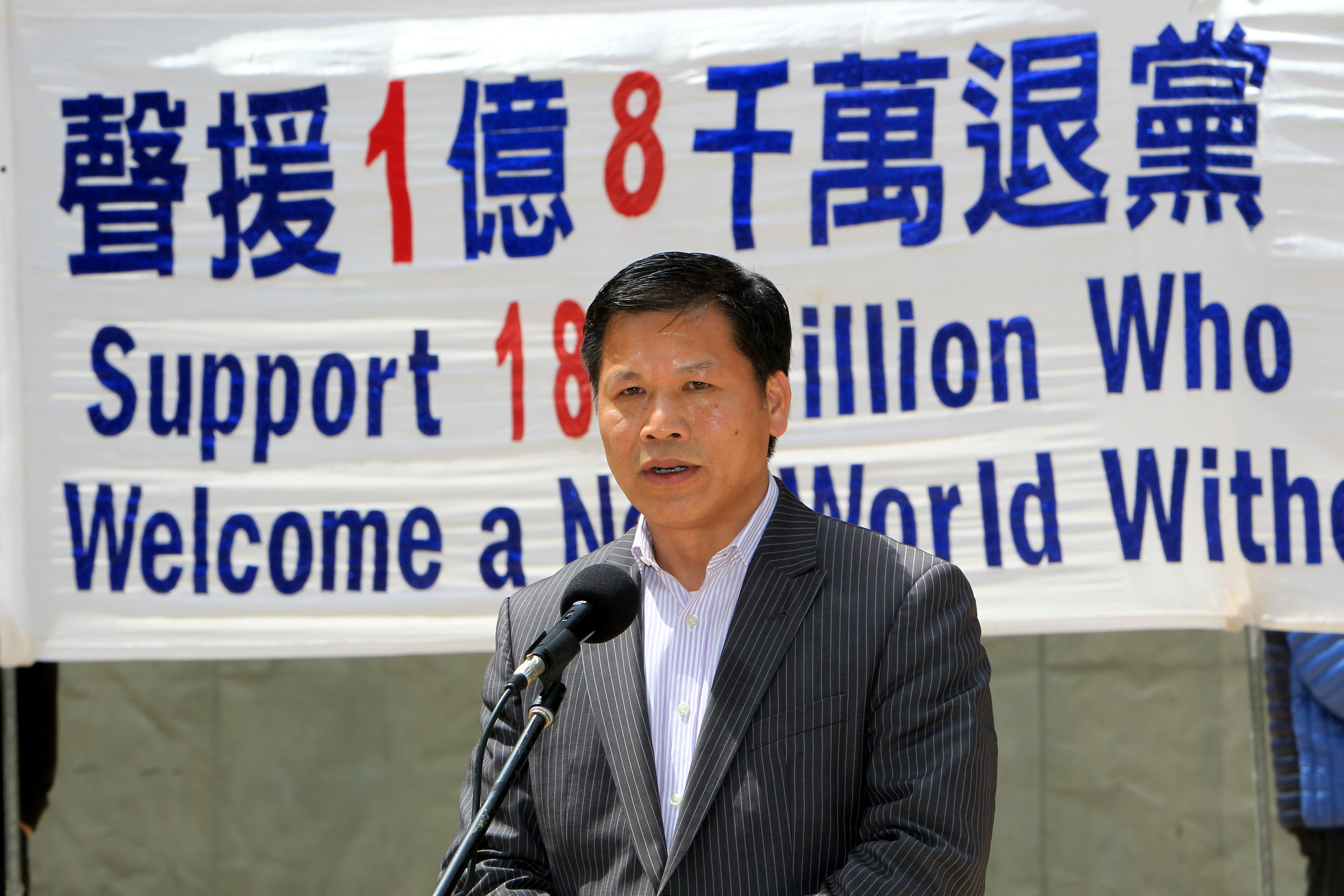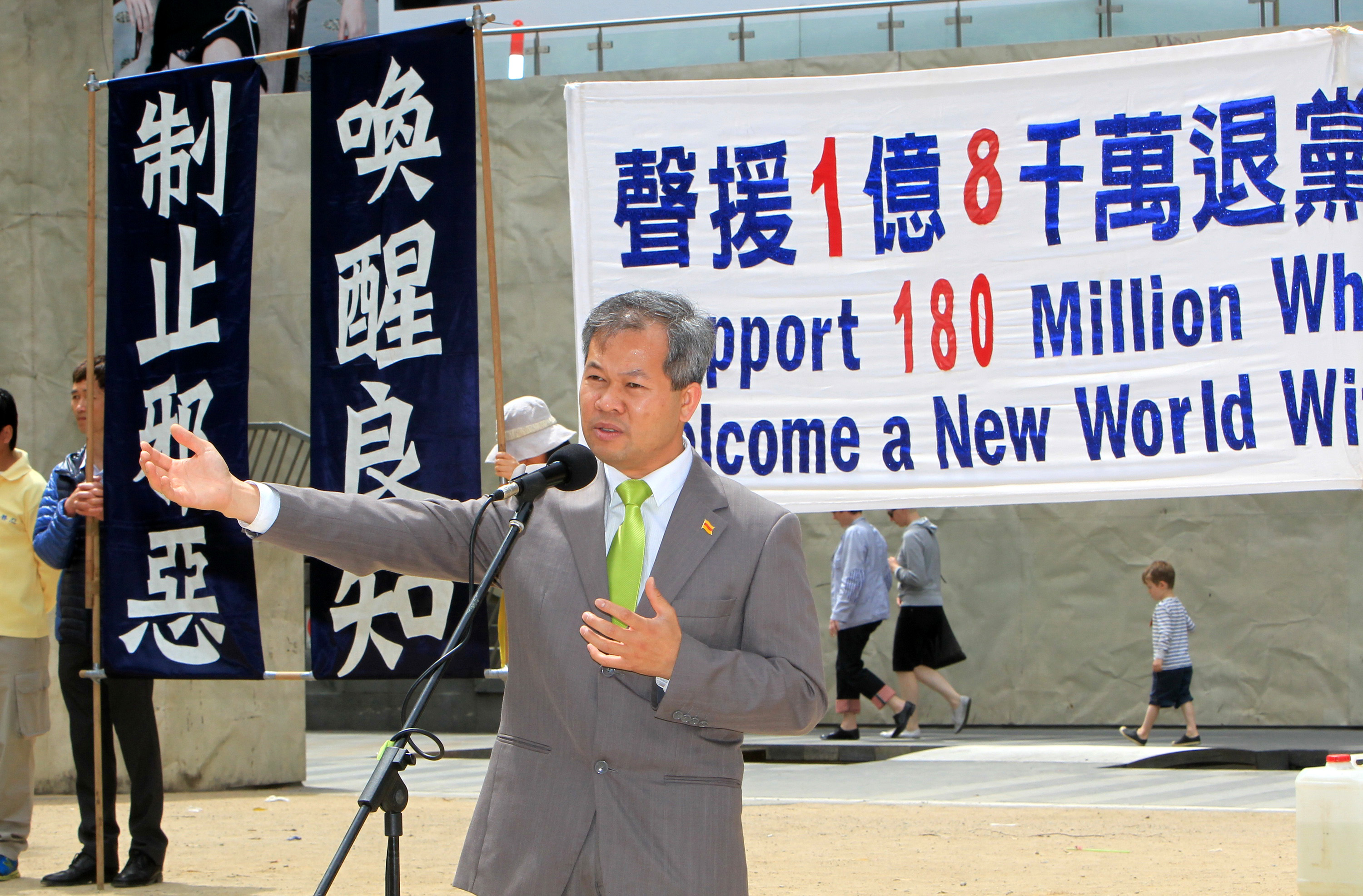 《天安门时报》社长兼总编、中国民主党(澳洲)主席阮杰先生在集会上发言
