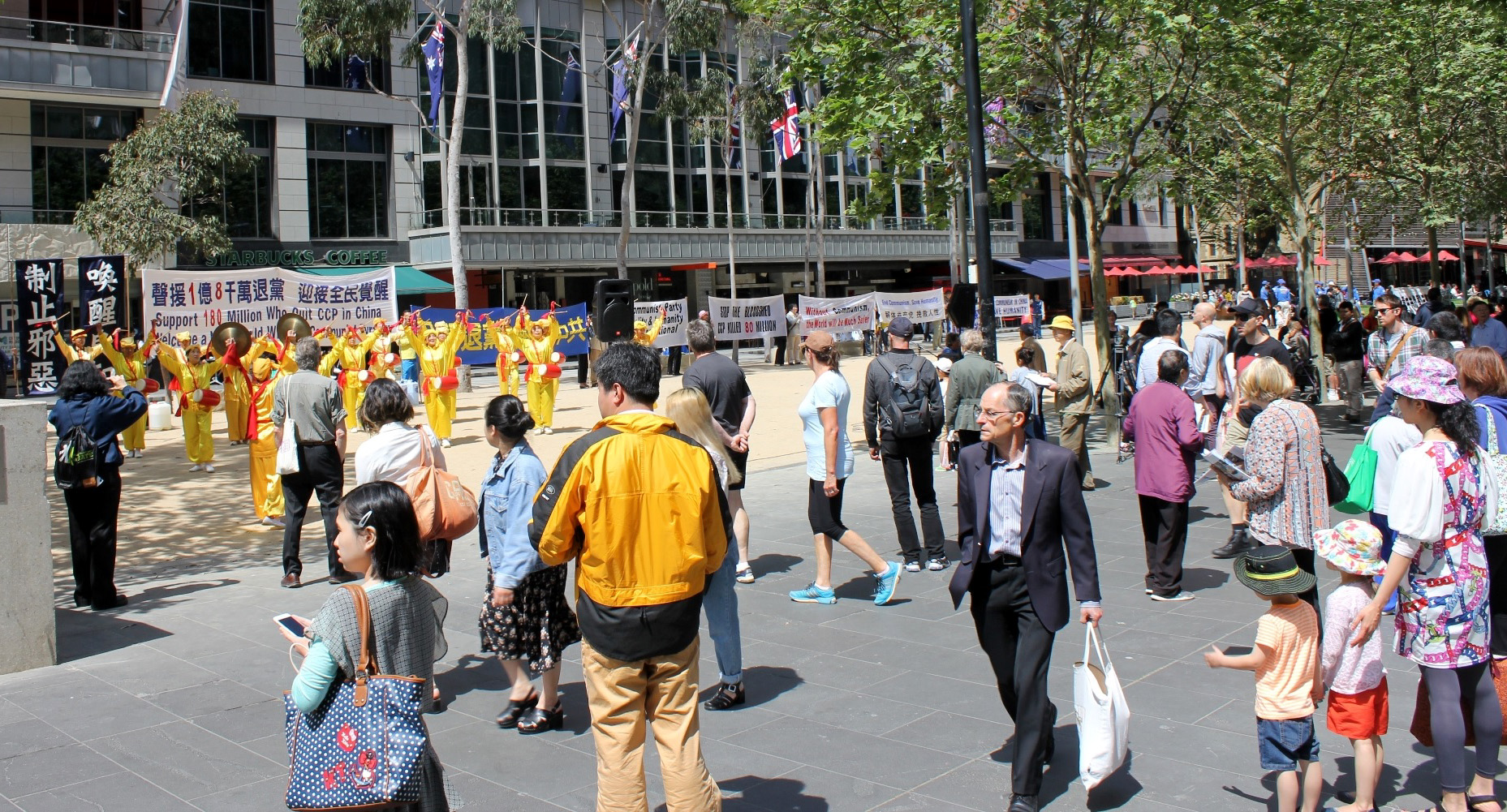 墨尔本市民和游客被声援三退集会上的发言和表演深深吸引
