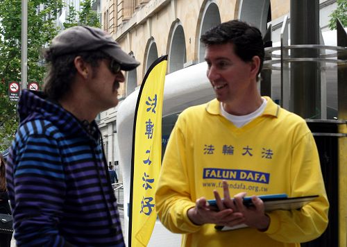 伊恩•卡希尔(Ian Cahill)是个年轻小伙子,他签了名之后去办自己的事情,之后又回来了,表示对活摘器官这件事情有所了解,并建议学员们从多个角度将征签活动做得更广泛和深入。他说:“你们需要创建一个运动,守住已经签名支持的人们,让他们知道事态的进展。”他认为这样一来,已经签名的人们就会帮助传播真相,会有更多的人来支持。他还建议设立一个网络版的征签活动,他说:“很多人看到你们在街上,并不知道你们在做什么,出于防人之心,怕自己被别人强加什么东西,根本就不靠近来。如果你有一个在线的版本,并明确地展示给人们,多数人会很乐意自己去阅读了解,然后就会支持。”他还建议学员们征签时收集人们的电子邮件,强调一定要让签过名的人获悉最新的事态进展。