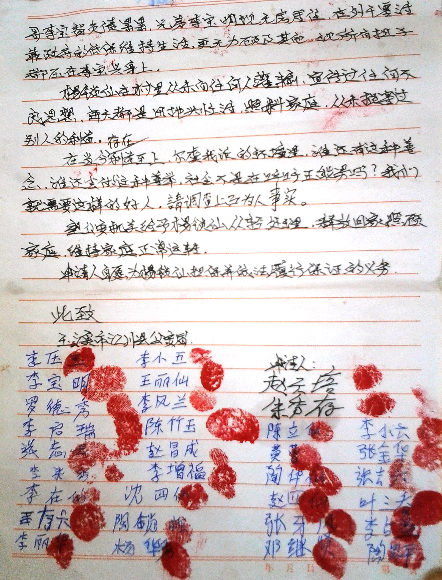 审判长说:“请律师作辩护。”律师辩护时是这样说的:“我不认同公诉人说的杨锁仙是到安某某家渗透法轮功,据我所知杨锁仙与安某某是亲戚,到亲戚家吃饭,在聊天的时候自然会聊到身体健康问题,杨锁仙只是把她炼法轮功后病痛不治而愈的经历告诉亲戚,好的东西是要与人分享的,各位请看这些都是认识杨锁仙的亲朋好友为她签的联名担保书。杨锁仙平时是个勤劳善良的人,在村里也是公认的好人。”