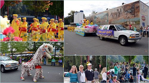 ![]() 法轮功学员参加西雅图地区易萨跨市三文鱼节游行 |