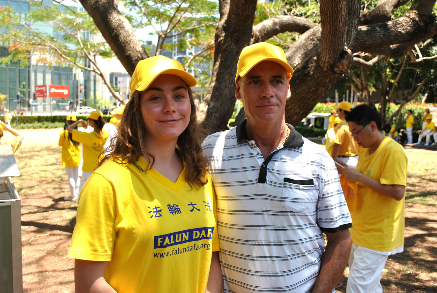 游行之前,法轮功学员一直在集会现场炼功,宁静祥和而有序的场面与周围的嘈杂环境形成对比,引来很多人观看和称赞。自由撰稿人查琳•卡梅伦(Charlyn Cameron)说:“我刚从那边过来,很多团体,都那么哄闹,而这里如此祥和,让人感受完全不同,太美好了。”卡梅伦女士今年观看过神韵演出,她说今天在这里感受到一种(与神韵)同样祥和的能量。了解到法轮功学员在中国遭受迫害以及被活摘器官的真相后,她说又感受到了另一种极端的反差--如此美好的东西遭受这么残酷的迫害,真可怕!