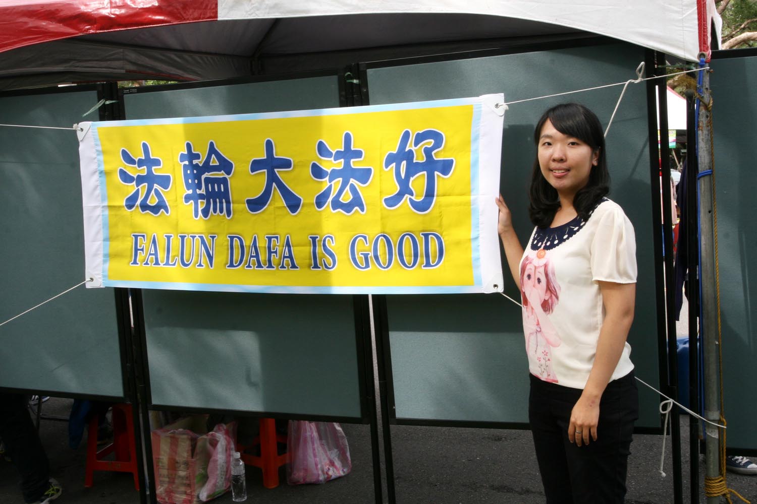 今天在校庆活动设立法轮功弘法摊位,台大医学院职能治疗系的沈采蓓表示,希望有更多的民众前来了解真相,他们将以亲身修炼的经历和大家分享。