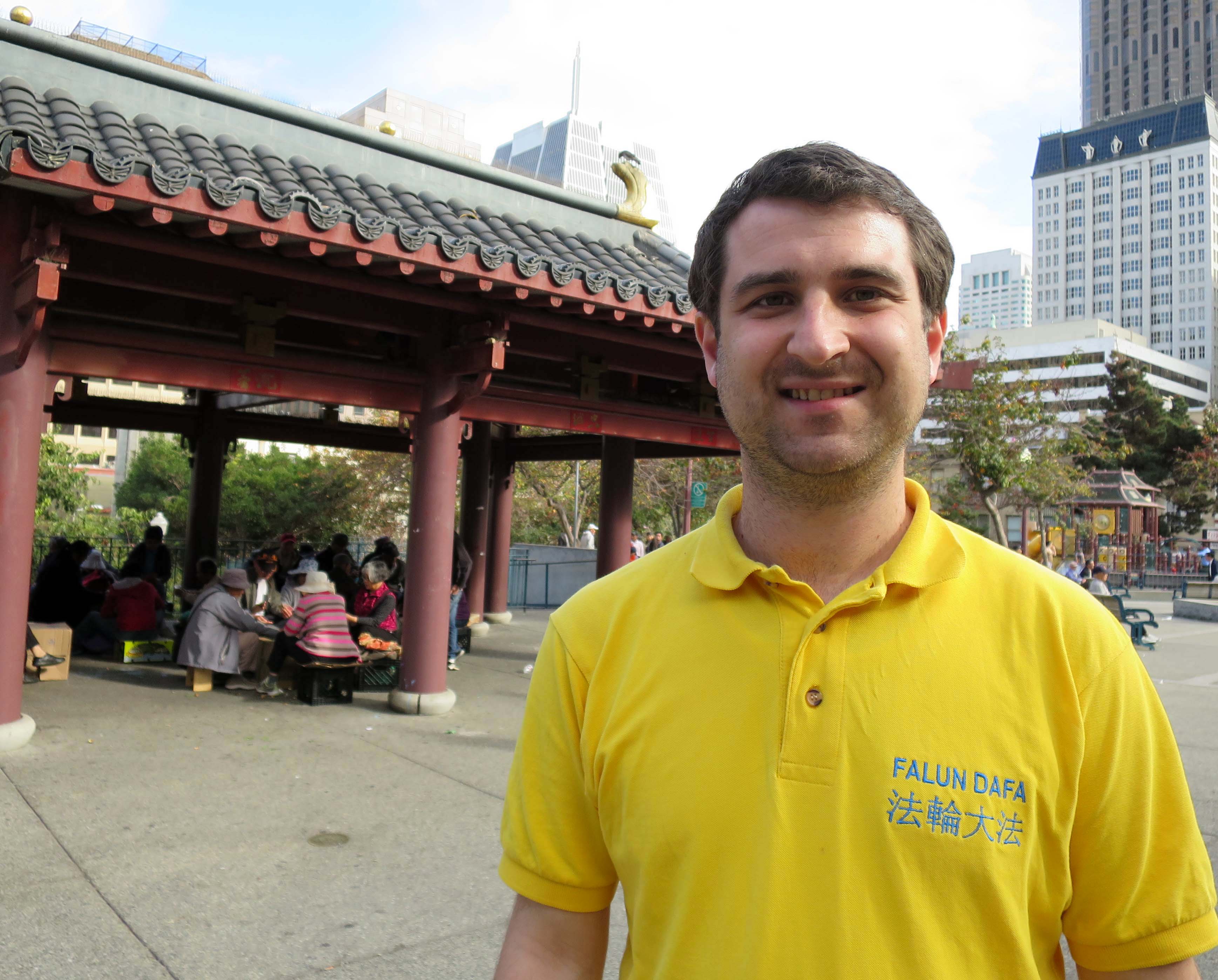 花园角坐落在旧金山中国城,是当地华人聚集聊天、游玩之地。当天,蒙丁和其他法轮功学员一起来到这里集体炼功,并摆满了法轮功真相的展板,播放关于法轮功的真相广播。学员们希望能让那里的华人了解法轮功受中共迫害的真相。